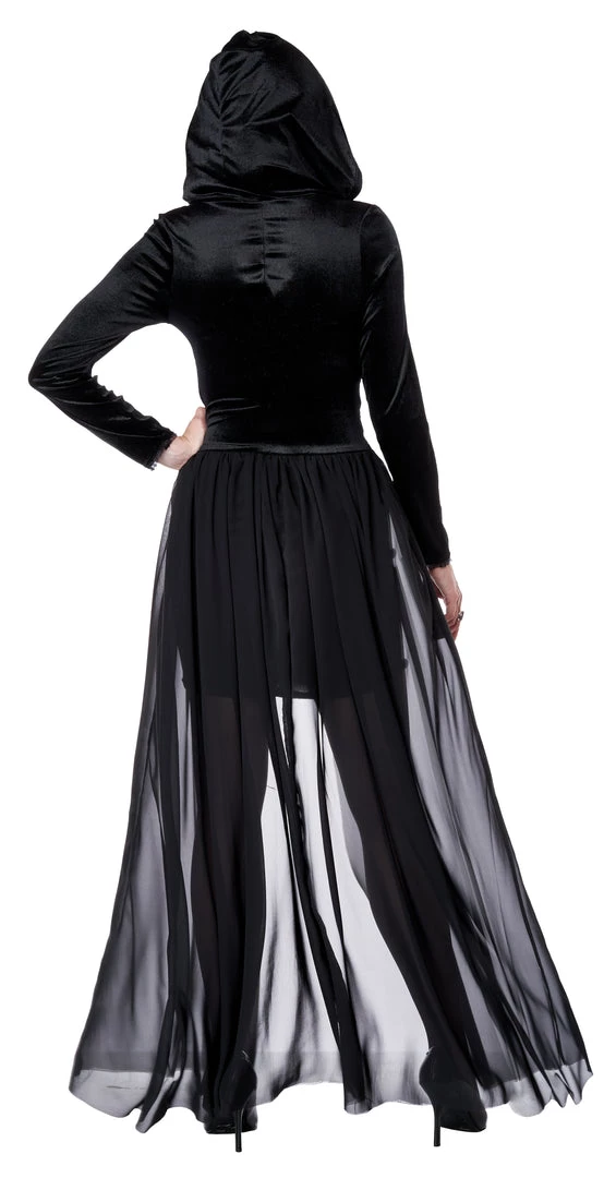 The Sexy Gothic Hooded Dress Costume for Adults comes with
