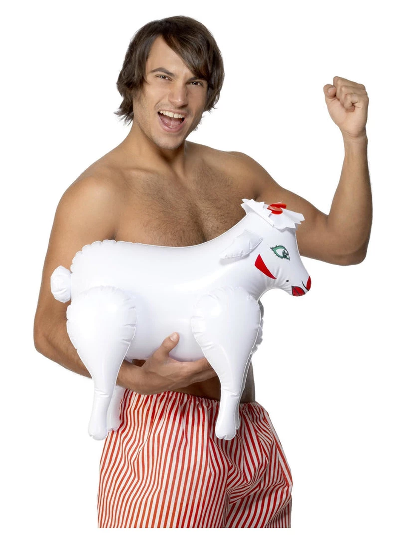 Get to the hen party tonight! Here is a prop of inflatable sheep that can be used for hen and other parties. The white sheep can bonk baa baa and is a real fun in parties. Surprise your guests with this animal prop.