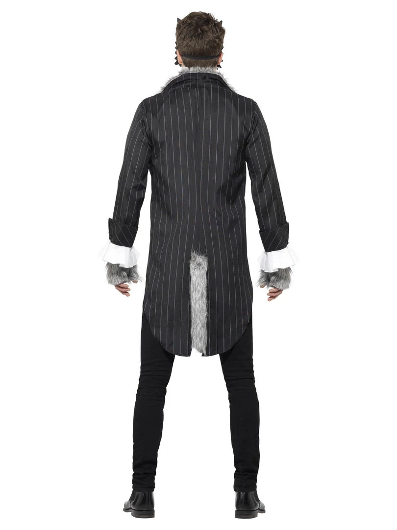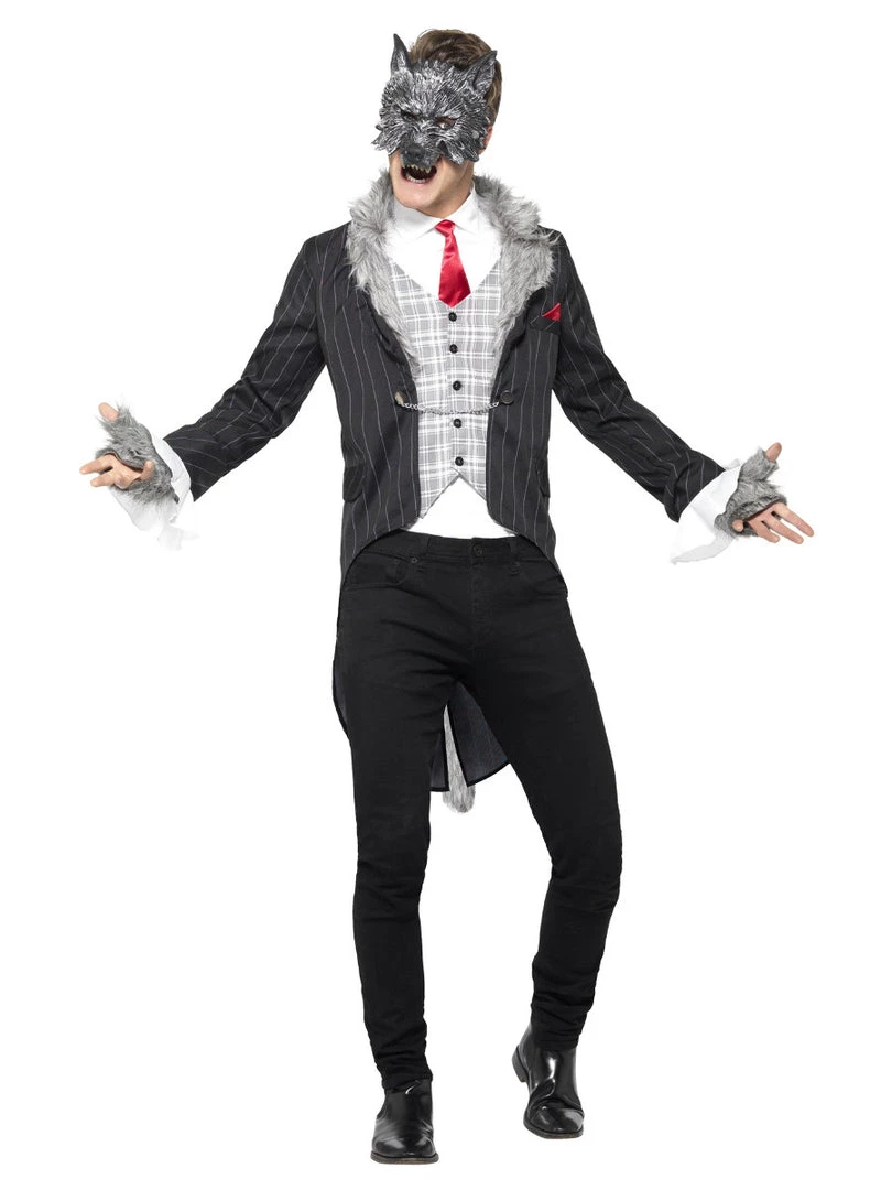 The costume comes in dark grey color with a matching jacket, a detachable tail, mock shirt, face mask and pair of fingerless gloves.