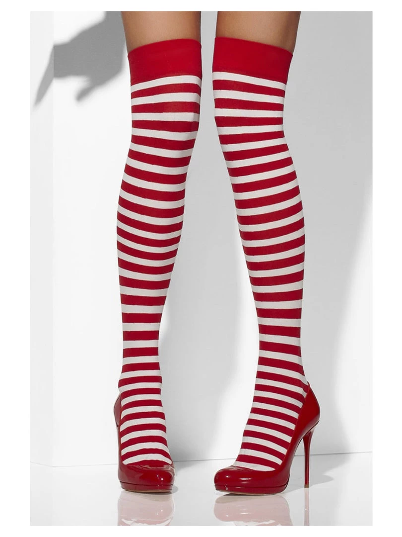 These opaque hold-ups can be paired up depending on your party theme and costume. You can choose from a variety of colours and designs as shown here. They are available in single colours and also in designs and stripes.