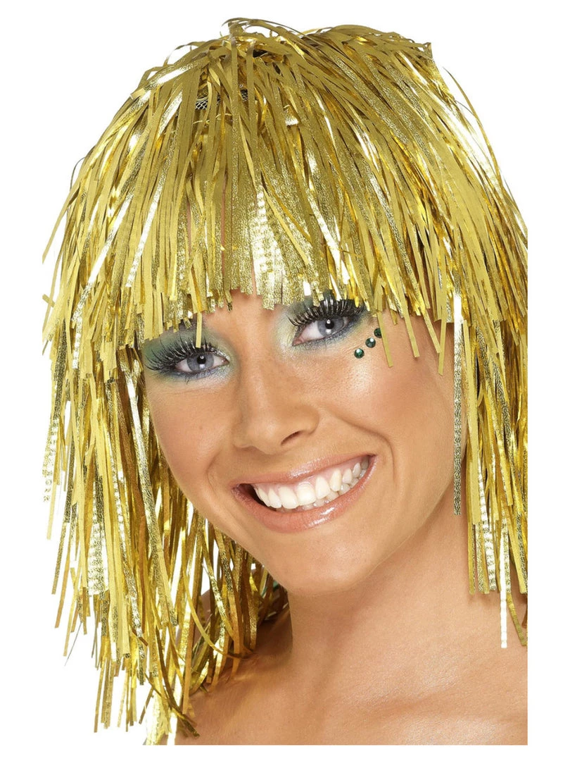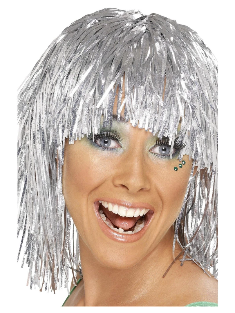 Bring Disco back with this Cyber Tinsel Wig. This 1970’s style wig is sure to make you the center of attraction. This short dazzling wig will rock the disco party and bring the music out in you at the next music party.
