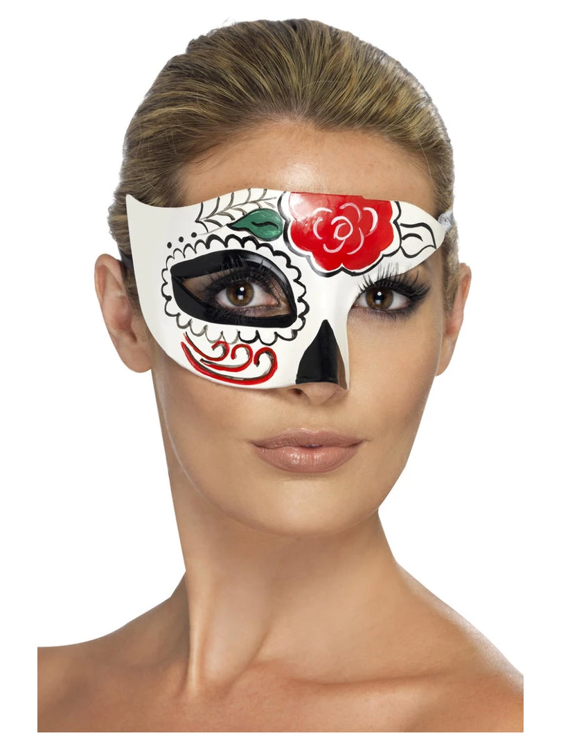 This Sexy Day of the Dead Half Eye Mask will make any Halloween Costume sexy as ever. With intricate designs you are sure to show your sultry side. Comes in White this mask will make you the most talked about in the crowd.