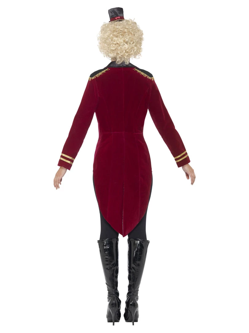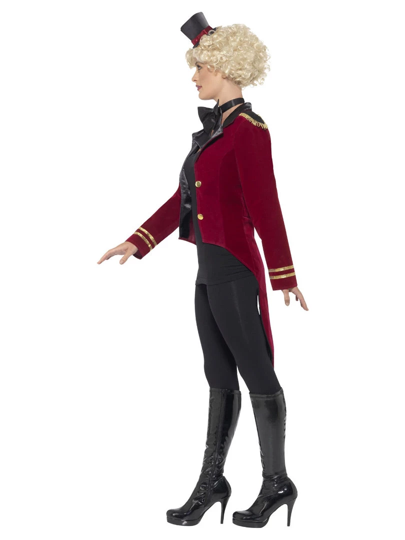 Be the master of the rings and train the lions with this ringmaster costume for women. This red costume comes with jacket, collar and mini top hat. Be the ringmaster in the next Halloween party.